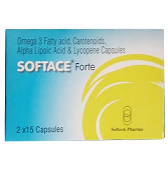 Softace Forte Capsule Softace Forte Capsule is a nutritional supplement containing all the essential nutrients. It consist of Alpha lipoic acid, Chromium picolinate, Docosahexaenoic acid (DHA), Eicosapentaenoic acid (EPA), Copper, Manganese, Zinc, Lycopene, Mixed carotene, Selenium dioxide. Benefits of key ingredients: Alpha-lipoic acid is a rich source of omega 6 essential fatty acids and gamma-linoleic acid, which is converted in the body to form prostaglandins.Evening primrose oil capsules are also beneficial in helping to lower blood cholesterol, reducing blood pressure, decreasing anxiety and maintaining healthy skin and hair. Chromium is an essential trace mineral, needed for insulin activity in carbohydrate, fat and protein metabolism. Optimum level may reduce insulin resistance, improves blood sugar control and help to reduce risk of cardiovascular diseases and type 2 diabetes. Omega-3 fatty acids (Eicosapentanoic acid and Docosahexanoic acid) help to reduce the risk of heart disease (e.g., irregular heartbeat) and also to promote healthy skin. They are also used along with diet and exercise to help lower levels of a certain blood fat (triglyceride) and to raise levels of "good" cholesterol (HDL). Lycopene is allegedly a more effective antioxidant than other of its carotenoid cousins which include beta-carotene. Its powerful antioxidant actions are effective in maintaining the strength, thickness and fluidity of cell membranes. Cell membranes are the guardians of cells. They are responsible for screening what goes in and out of cells. They allow good nutrients in and remove cellular junk and prevent toxins from entering the cells. Strong healthy cell membranes are vital in the prevention of many diseases. Softace Forte Capsule is a nutritional supplement used as adjuvant in Diabetic Neuropathy and other associated problems as it helps to keep blood sugar levels under control. Use under medical Supervision