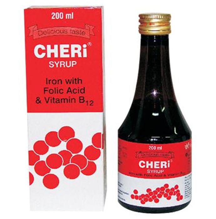 Cheri syrup is Nutritional supplement which contains Elemental Iron,Vitamin B12 (Cyanocobalamin) and Folic Acid. Role of key ingredients:- Elemental Iron is source of iron,Iron transports oxygen throughout the body and maintains red blood cells, thus making an individual feel energetic and preventing anemia. Folic acid is essential to numerous bodily functions ranging from nucleotide biosynthesis to the remethylation of homocysteine. It is especially important during periods of rapid cell division and growth. Both children and adults require folic acid to produce healthy red blood cells and prevent anemia. Vitamin B12, a water-soluble vitamin, Mecobalamin is also closely involved with folic acid in several important metabolic pathways. Deficiency leads to the development of megaloblastic anaemias. Cheri syrup used in the treatment:- Nutritional deficiency anemia during pregnancy General weakness Iron deficiency anaemia Direction for use:- Cheri syrup can be taken orally with water, after meals. Use under medical supervision.